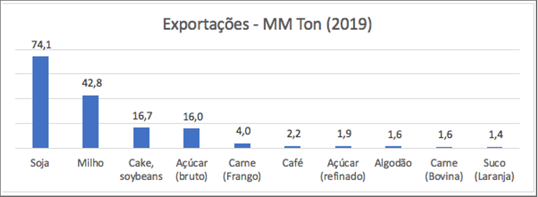 Dentre os itens citados, saliento a importância da exportação de três: soja, milho e carnes. A soma dos valores exportados desses itens totalizou USD 47 bilhões em 2019. É interessante ver que 20% do valor exportado pelo Brasil está amparado em apenas três itens. Esse tipo de análise mostra onde estão os pilares da produção e geração de empregos do nosso país. O Brasil é referência mundial em produção agrícola desses mesmos itens. Fato que nos orgulha muito.
