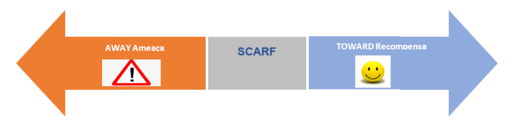 O mecanismo de Ameaça e Recompensa do cérebro é um princípio muito útil para entendermos os cinco domínios que regem as dinâmicas sociais no trabalho. Esses cinco domínios formam o acrônimo inglês SCARF – Status, Certainty, Autonomy, Relatedness, Fairness.